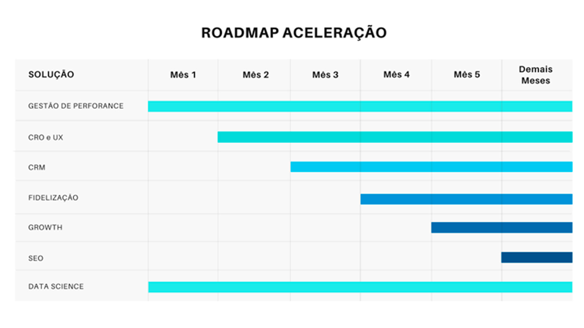 Você está pronto para uma transformação total no seu negócio? Nossa solução de Aceleração Completa é a solução abrangente que leva sua empresa a patamares extraordinários. Unindo expertise em Benchmarking, Gestão de Performance, Social Consulting, CRO, Copywriting, CRM, SEO, Growth Marketing e Traqueamento Avançado, oferecemos a fórmula completa para impulsionar sua presença online, atrair mais clientes e alcançar o sucesso duradouro.